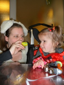 Tussen de middag smulde ze van poffertjes met poedersuiker, mmm. Ze liet van zich horen toen ze even in de bedbox mocht gaan rusten. Daar had ze niet zoveel zin in. Samen met Ira en Eva mocht ze liedjes luisteren op tv. En ….zzzz, daar viel ze in slaap.