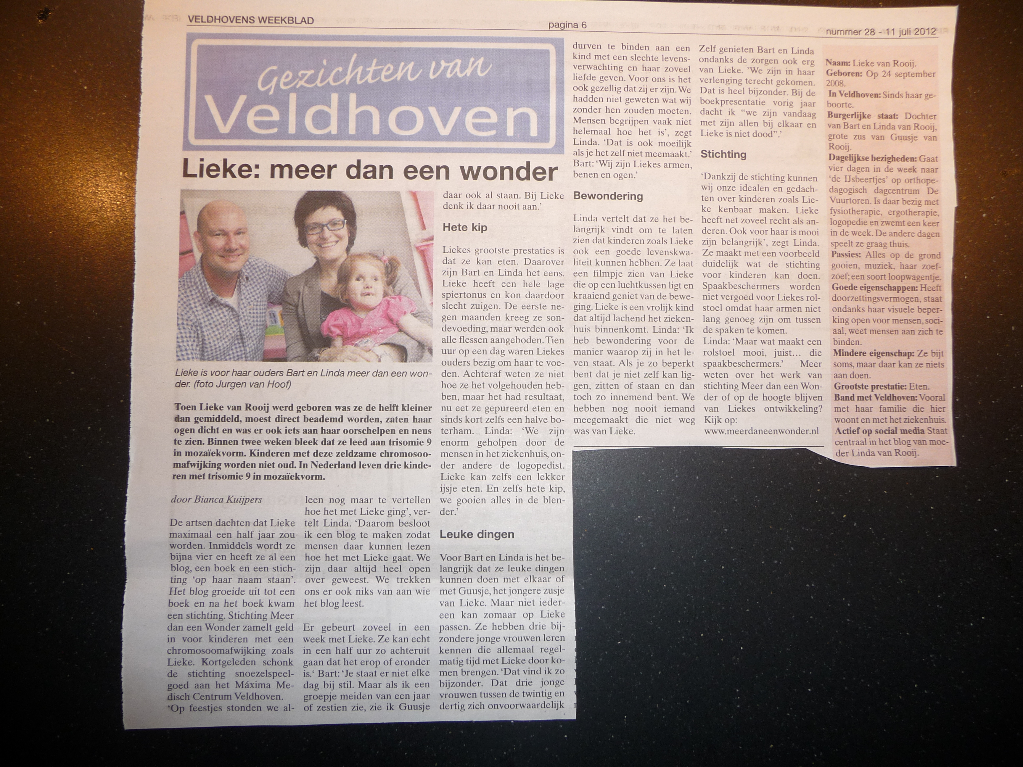 Heel mooi en pakkend artikel. En wie smelt nu niet voor Lieke.. Dat kan alleen met ouders zoals jullie. Heel veel bewondering daarvoor.
