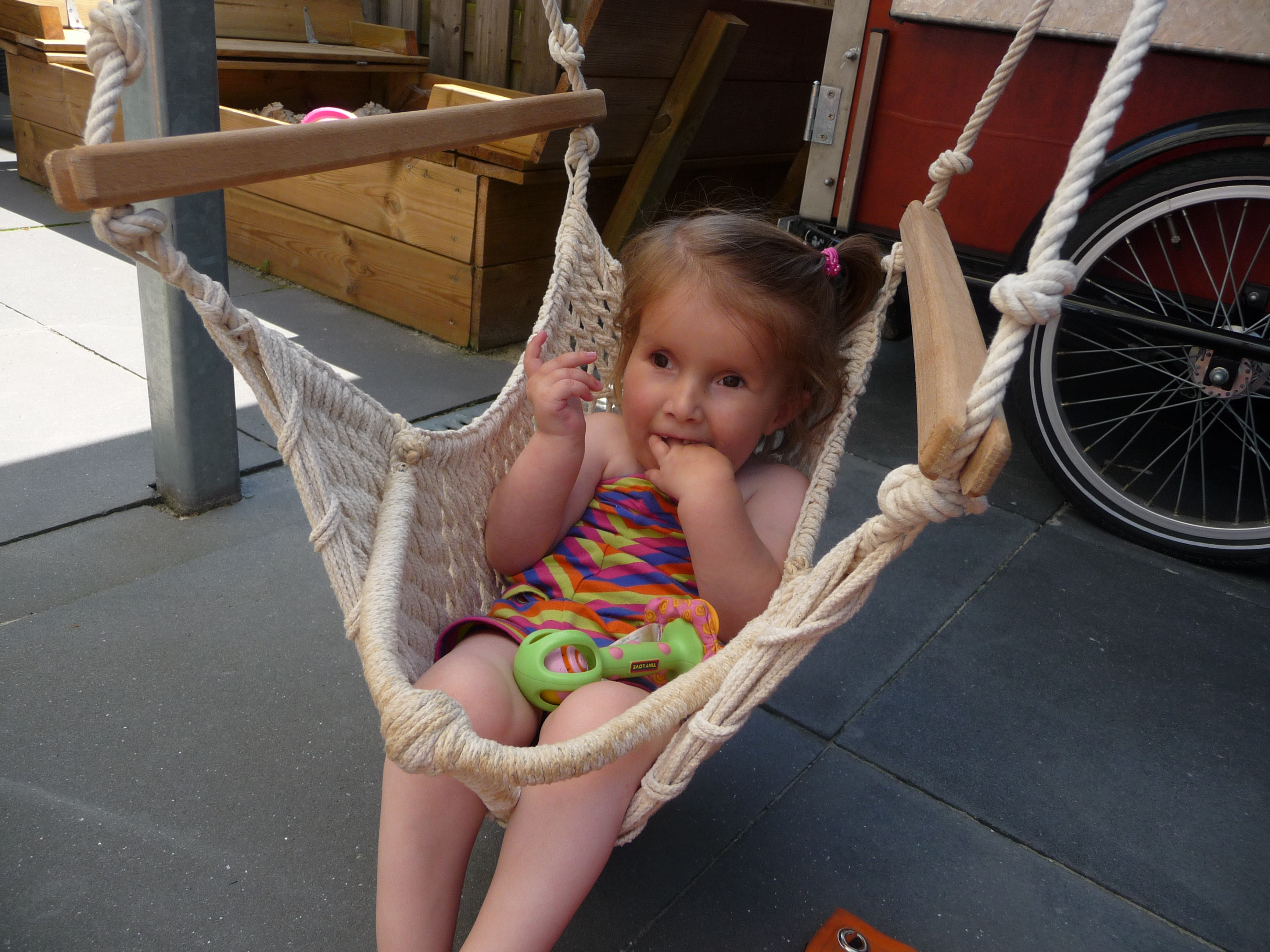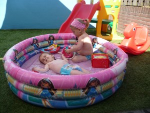 Lieke genoot van het afkoelen en alle bewegingen van haar zusje. Nog even eten met Renee, voordat Lieke een middagdutje gaat doen in haar gekoelde kamertje!
