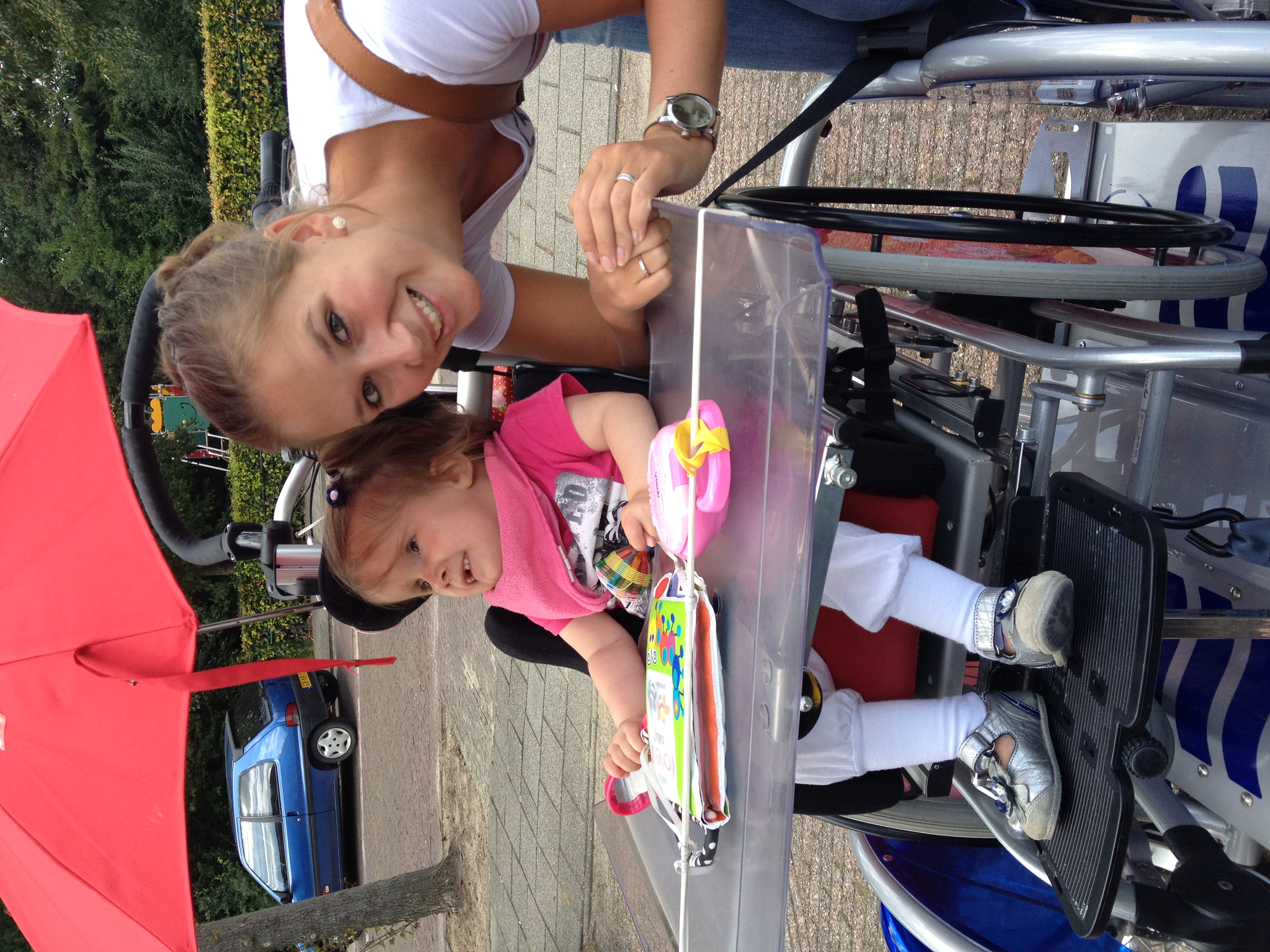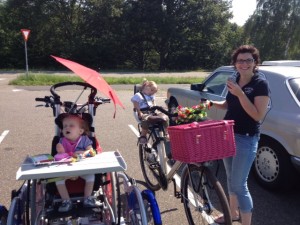 Ook zondag genoten van onze nieuwe fiets. Met z’n vieren 20 km! gefietst. Haartjes in de wind, zonnetje op het gezicht en…..slapen maar! Zelfs toen Bart en ikzelf stopten om even wat te drinken werden de dames niet wakker..