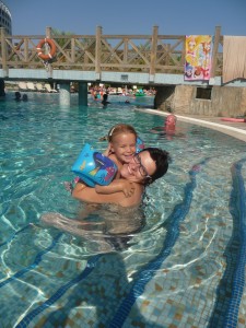 Na de finish van de Ten Miles van Tilburg was misschien de mooiste prijs, naast de voldoening, de medaille gemaakt door Lieke bij de IJsbeertjes. Toen volgde al snel de dinsdag van ons vertrek. Het viel best zwaar, het afscheid van Lieke, tranen stroomden..Nog een knuffel, nog een kus, nog een keer zeggen dat we echt terugkomen, dat ze lief moet zijn..en dat als ze iets ‘geks’ gaat doen, dat pas mag doen als papa en mama weer terug zijn. In de auto op weg naar Schiphol gaat de knop om, we gaan vakantie vieren, uitrusten in het zonnige Turkije. En dat is gelukt, niet gerealiseerd hoe nodig het was om bij te tanken! Genieten van zon, zee, strand, zwembad, lekker eten, geen klok. Relaxen bij het zwembad, spelen met Guusje in de speeltuin, knutselen in de miniclub, ’s avonds naar de minidisco, nieuwe mensen ontmoeten, op het terras zitten met een slapend meisje in de buggy. Voor andere gezinnen vaak zo gewoon, voor ons heel bijzonder.